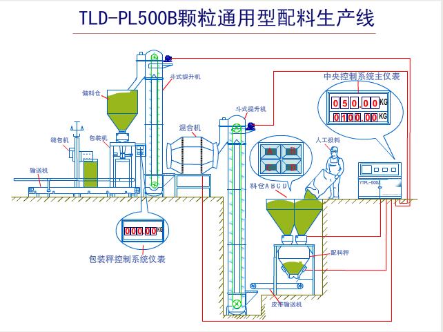 該套生產(chǎn)線(xiàn)廣泛應用于各類(lèi)物料多行業(yè)的自動(dòng) 配料包裝生產(chǎn)線(xiàn),配料只需人工將2-10種的物料投入各料倉中,電腦控制系統自動(dòng)將各種物料按預先設定好的比例自動(dòng)投放到稱(chēng)重系統中,稱(chēng)重系統將按照每種物料的配料比例自動(dòng)加入,每一次配料完成后由斗式提升機自動(dòng)將物料提到混合機中進(jìn)行混和,混合均勻后自動(dòng)排出再由斗式提升機提到儲料倉中供給包裝系統進(jìn)行自動(dòng)定量包裝。