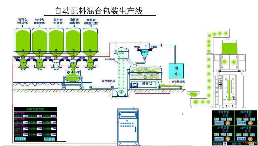 1、自動(dòng)化程度高:整個(gè)配料過(guò)程、包裝過(guò)程自動(dòng)完成,提高效率,節省人工